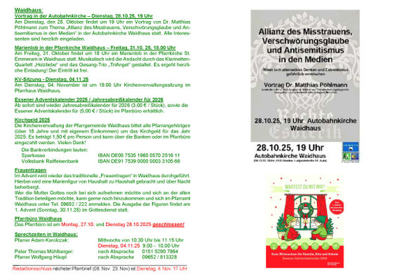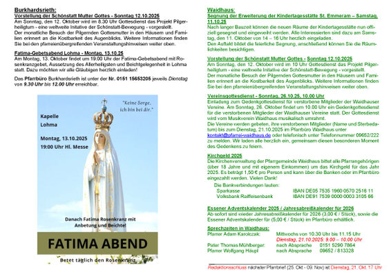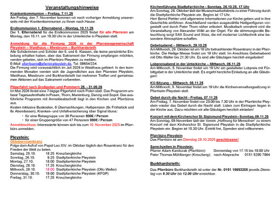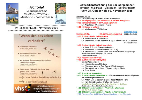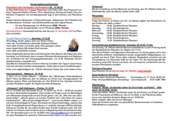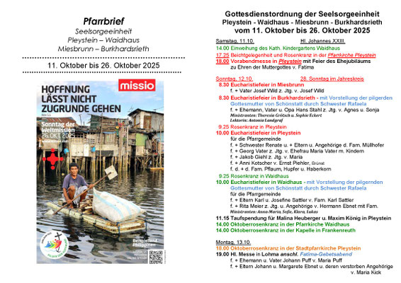 Aktueller Pfarrbrief der Seelsorgeeinheit Pleystein - Waidhaus - Miesbrunn - Burkhardsrieth